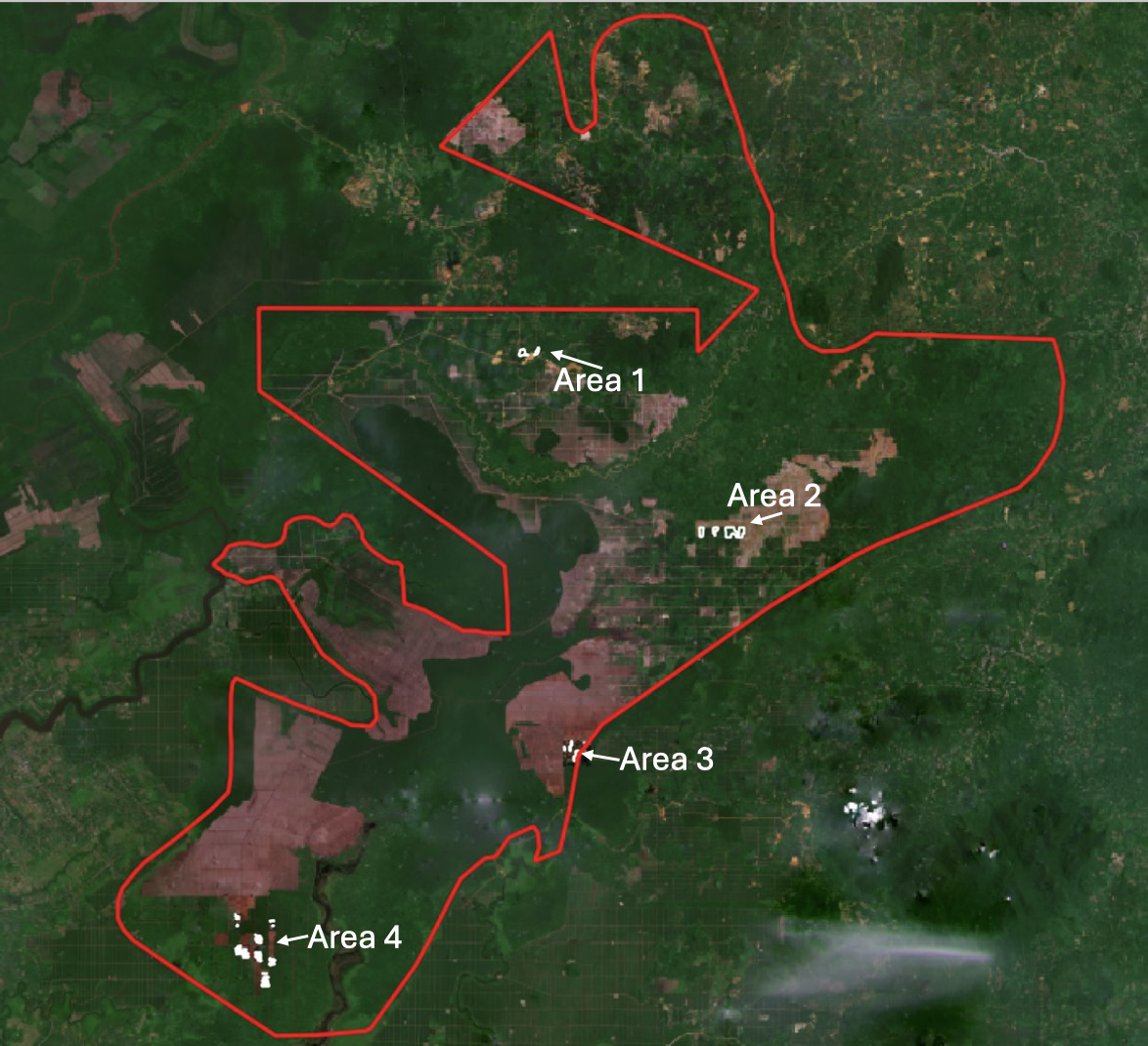 Satellite imagery shows clearing in Mayawana Persada started in 2016. Between 2018 and 2022, an estimated ~19,649 ha of rainforest were cleared.