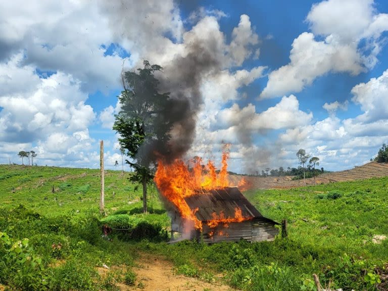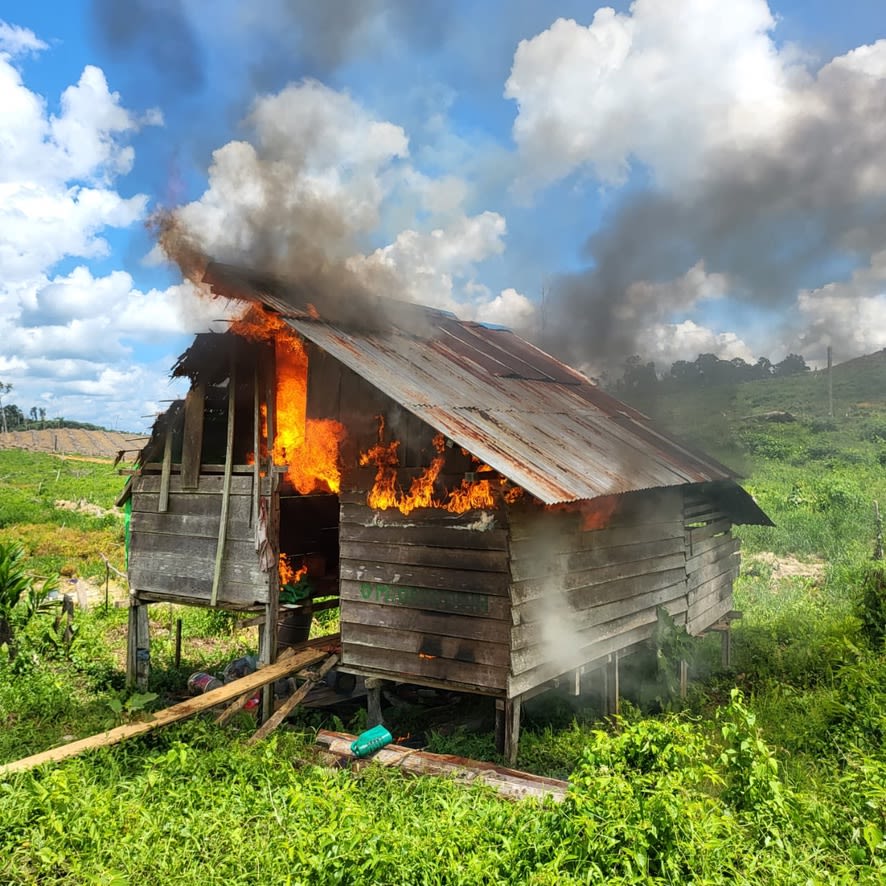 Beyond the environmental damage, significant land conflicts surround the concession. Mayawana Persada has evicted forest-dwelling Indigenous Dayak communities from their land and burned the residents’ field huts, work equipment and tons of stored rice (see image on right from JATAN). The company has destroyed smallholder farmers’ rubber groves and sacred sites. Since the beginning of Mayawana's operations, flooding has continued to occur repeatedly and has become more widespread, not only inundating the company's operational area, but also encroaching on residential areas and fields owned by the local and Indigenous Dayak community around the company's concession. The company has used their influence to criminalize several community members who protested these actions.
